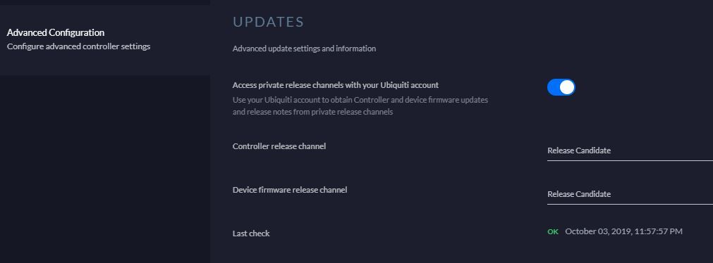Settings maintenance check for updates in cloudkey firmware section apply update.